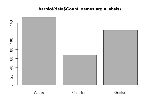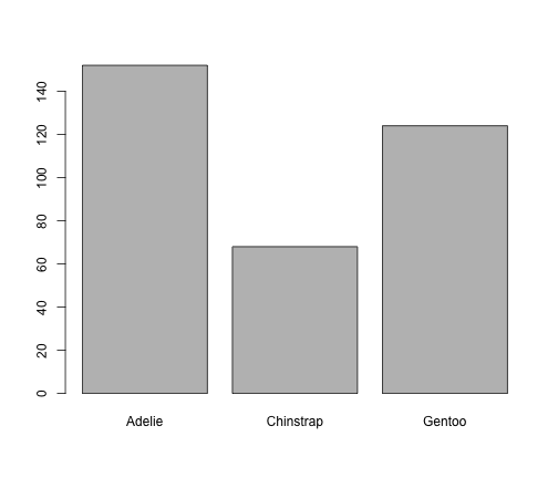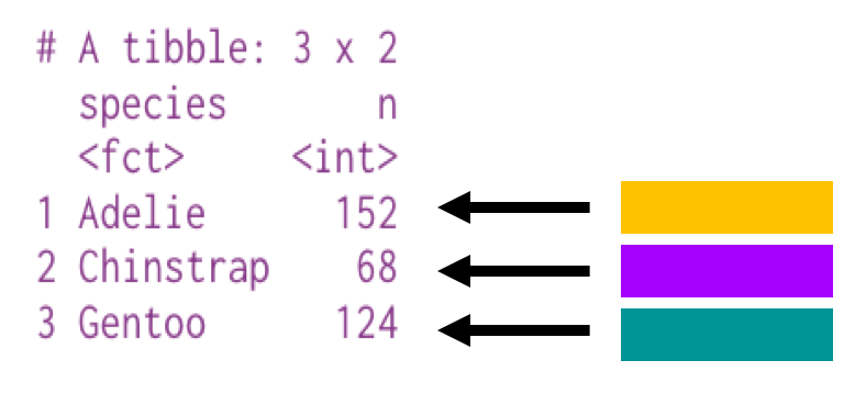 # A tibble: 3 x 2 species n <fct> <int>1 Adelie 1522 Chinstrap 683 Gentoo 124