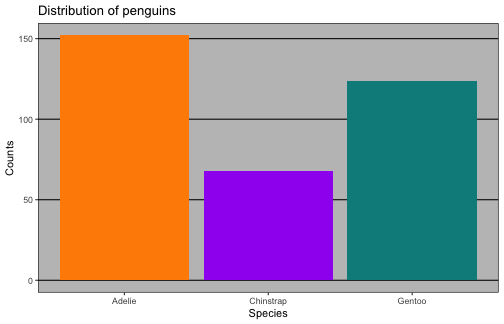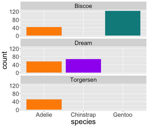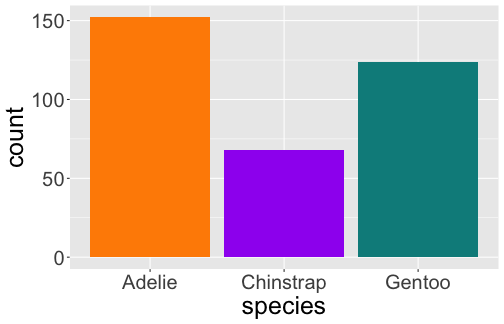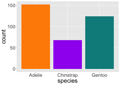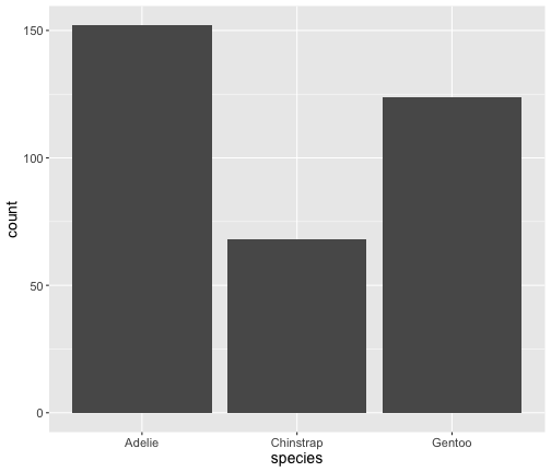 geom_bar() uses stat_count() by defaultggplot(penguins) + geom_bar(aes(x = species))